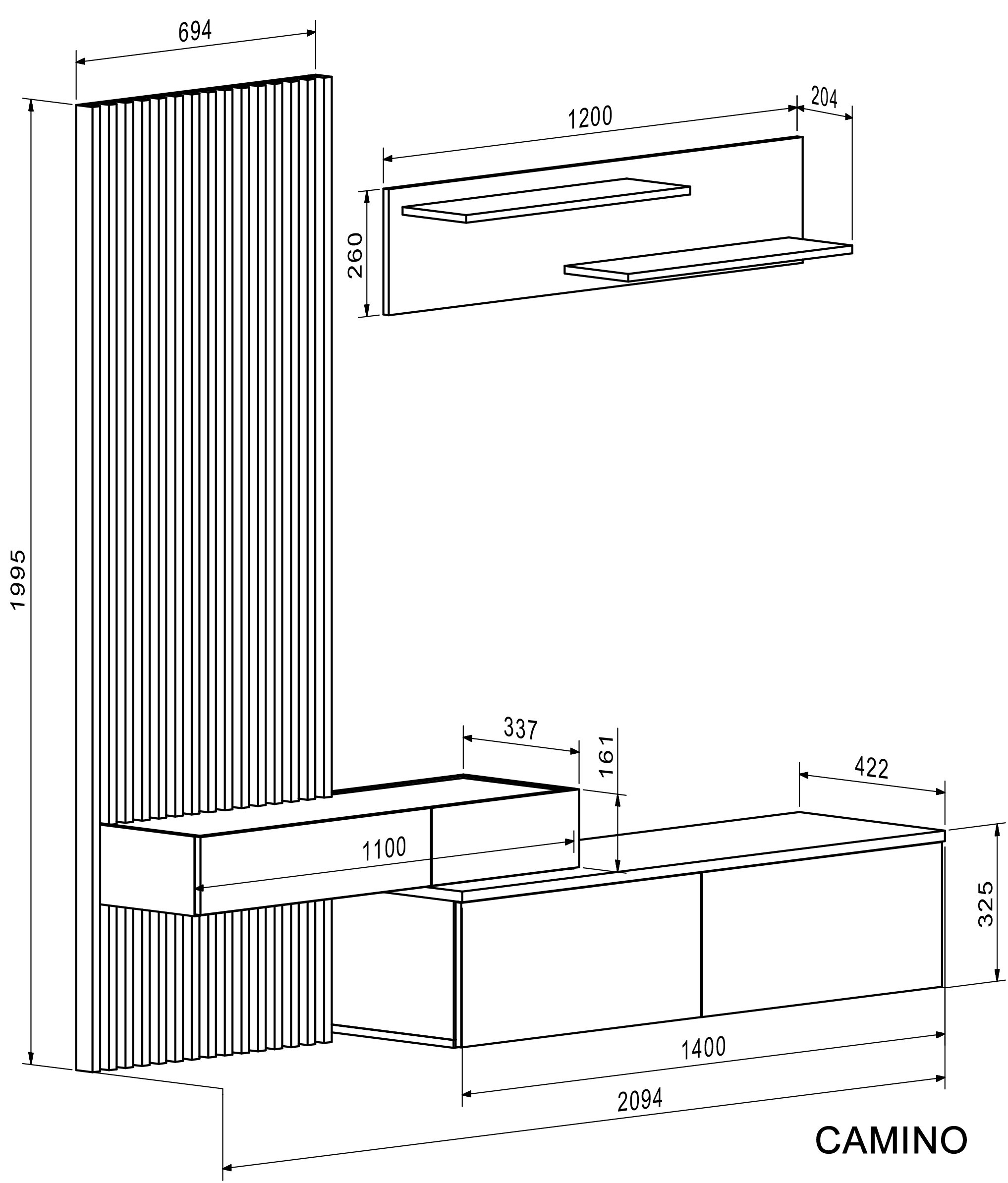 CAMINO kolekcija – tai modernūs svetainės korpusiniai baldai, skirti sukurti vientisą ir funkcionalų interjerą.