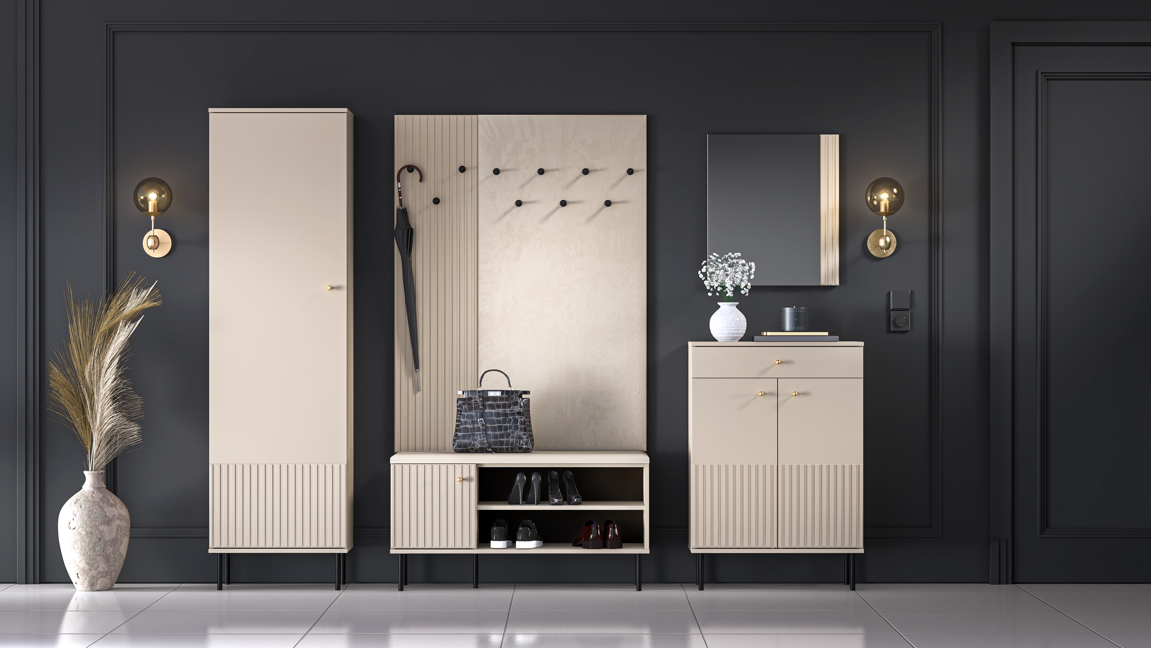 Sophie kolekcija – tai stilingų, funkcionalių ir kokybiškų baldų serija, kuri puikiai tinka įvairiems namų kambariams. Elegantiški kašmiro atspalviai, frezuoti frontai ir aukštos kokybės apdailos detalės suteikia baldams prabangos jausmą, o praktiškos funkcinės savybės – kasdienio komforto.