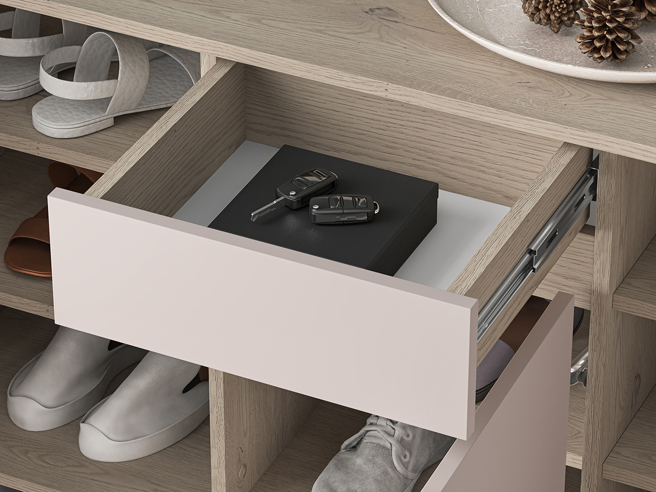 VOCO – baldų kolekcija, skirta stilingam ir funkcionaliam prieškambariui. Švelni Cashmere spalva su Cremona Terracotta akcentais ir „Push to open“ sistema suteikia interjerui švarų, šiuolaikišką vaizdą. Talpūs ir praktiški sprendimai padeda palaikyti tvarką ir sukurti jaukią pirmąją namų erdvę.