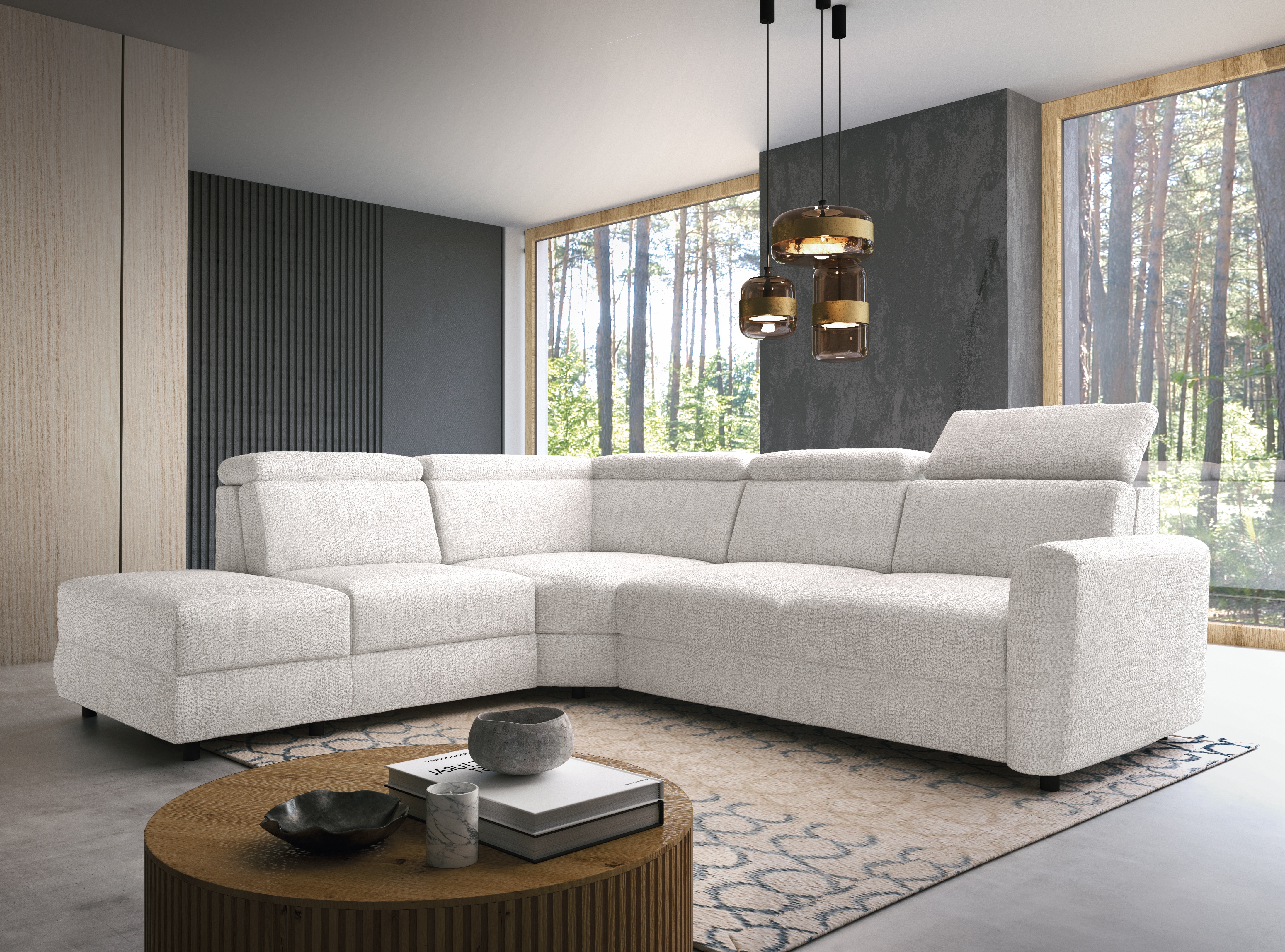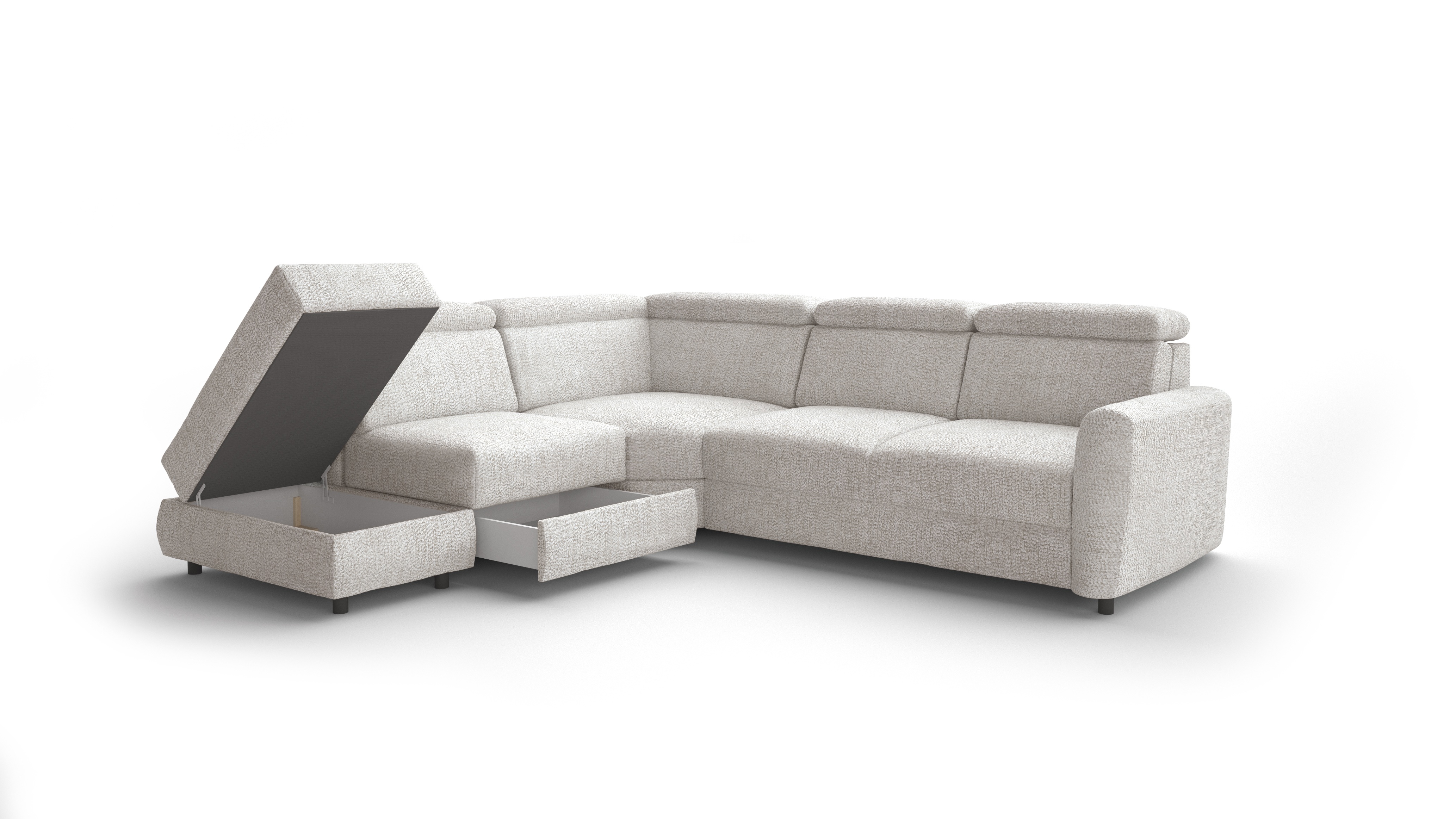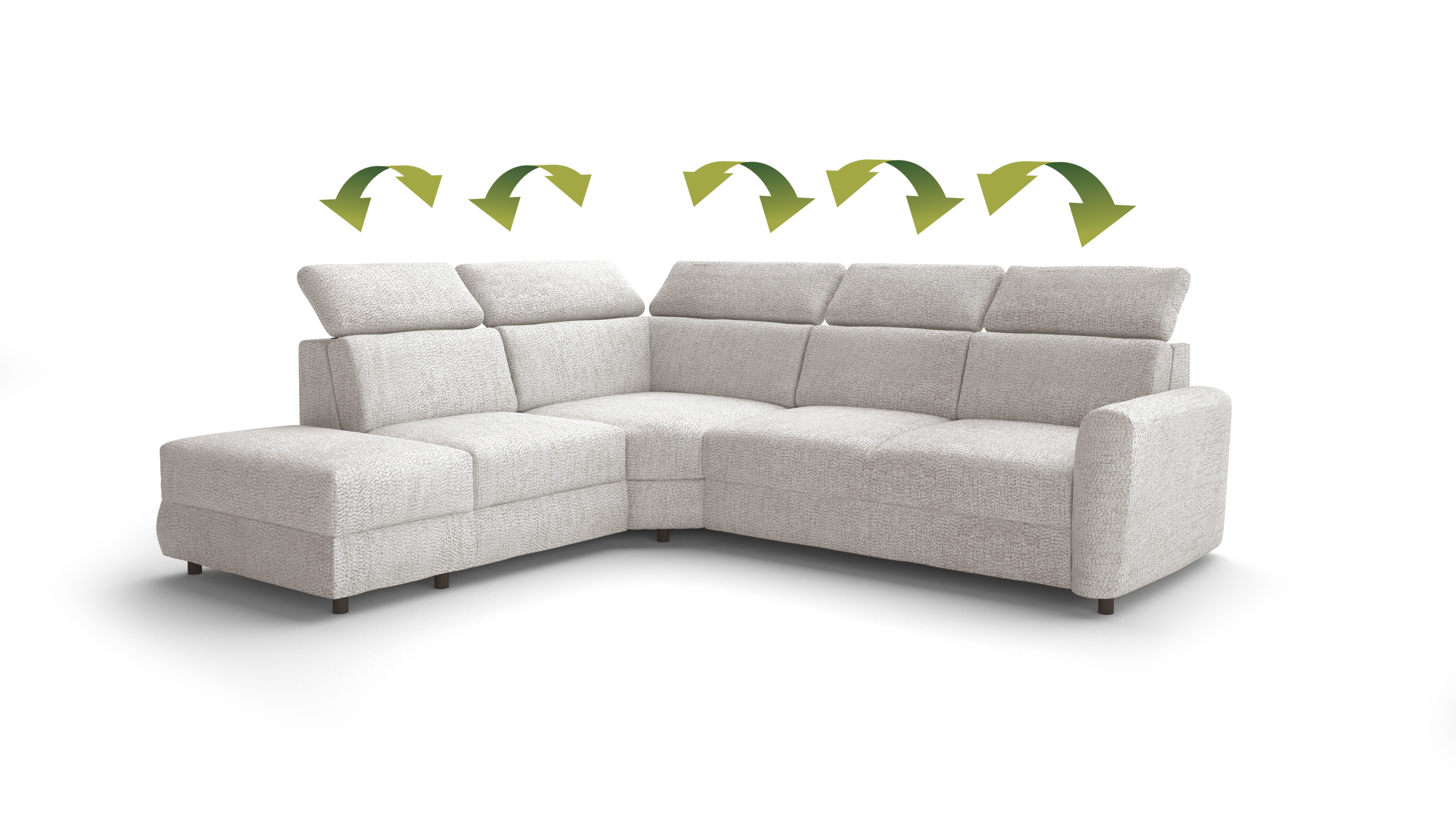 EMONDA – tai modulinė kampinė sofa, leidžianti pritaikyti baldų išdėstymą pagal individualius poreikius. Reguliuojami galvos atramos leidžia reguliuoti aukštį ir atlošo kampą naudojimo metu. Kampinėje dalyje įmontuotas USB prievadas leidžia naudotis elektriniais prietaisais atsipalaiduojant.