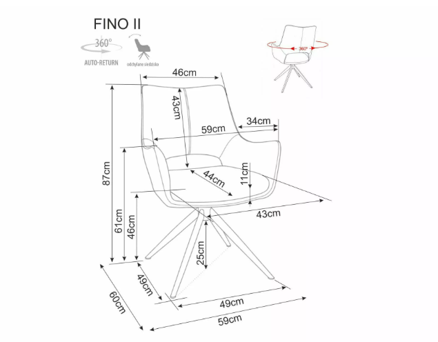 | Sėdimosios dalies aukštis: | 46 cm |