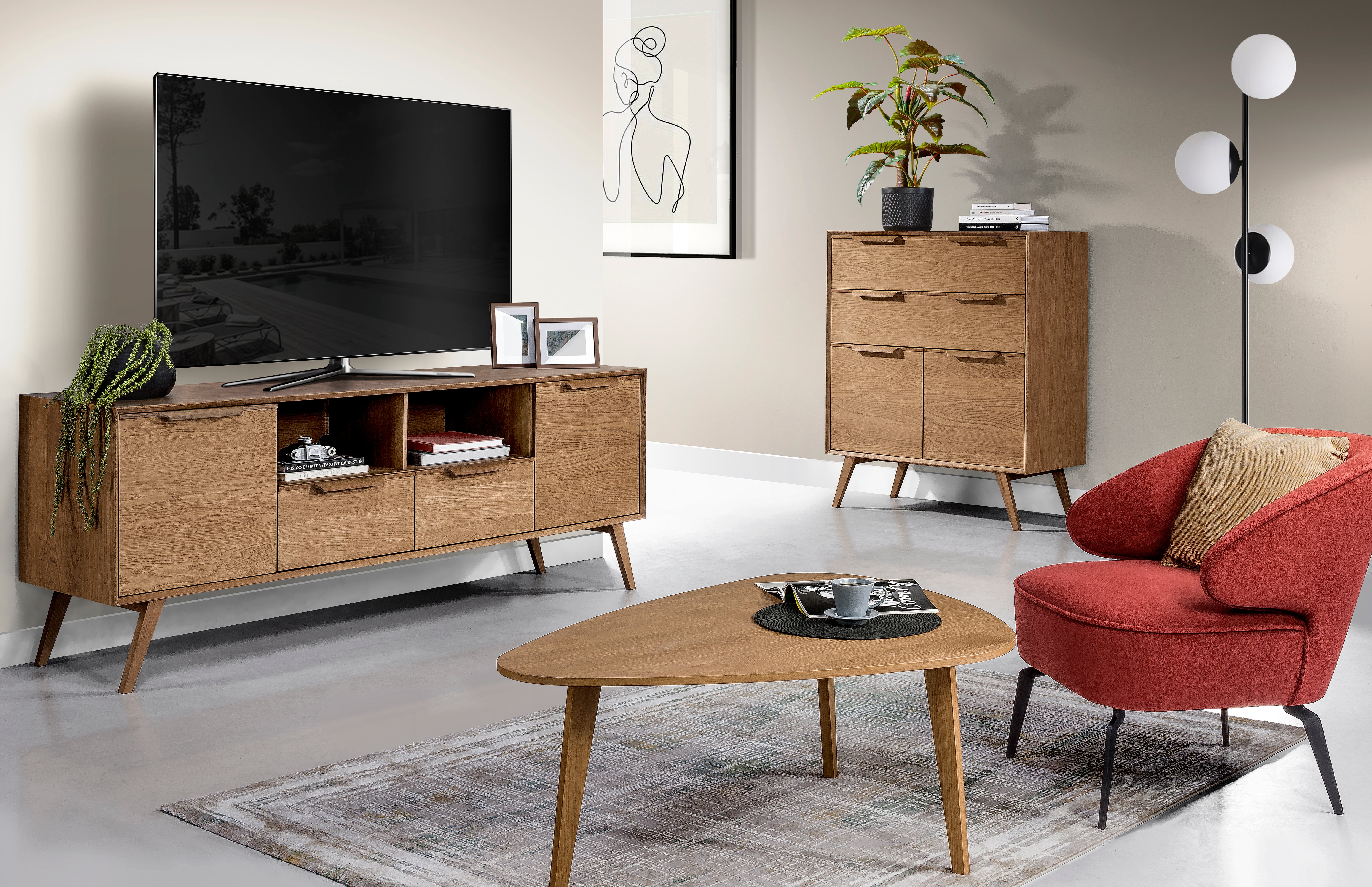 Komodos kambariui suteikia daugiau funkcionalumo, solidumo, elegancijos. Erdviame kambaryje jos puikiai papildo baldų komplektą, dailiai užpildo kambario plotą, o mažame gali būti labai gera spintos alternatyva, jei nereikia daug vietos daiktams.