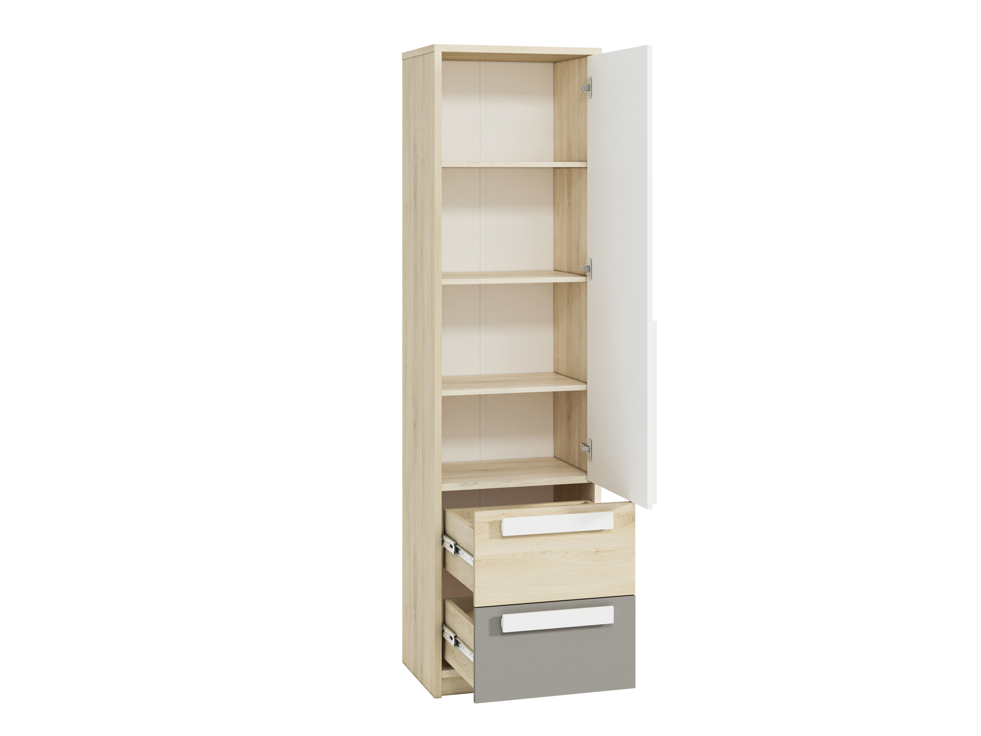 DROP – tai šiuolaikiška ir skandinaviško stiliaus baldų kolekcija, sukurta jaukiam ir funkcionaliam jaunimo ar vaiko kambariui. Švelnūs buko, baltos ir pilkos spalvų deriniai suteikia erdvei lengvumo, o patvarios medžiagos ir praktiškos konstrukcijos užtikrina ilgalaikį naudojimą.